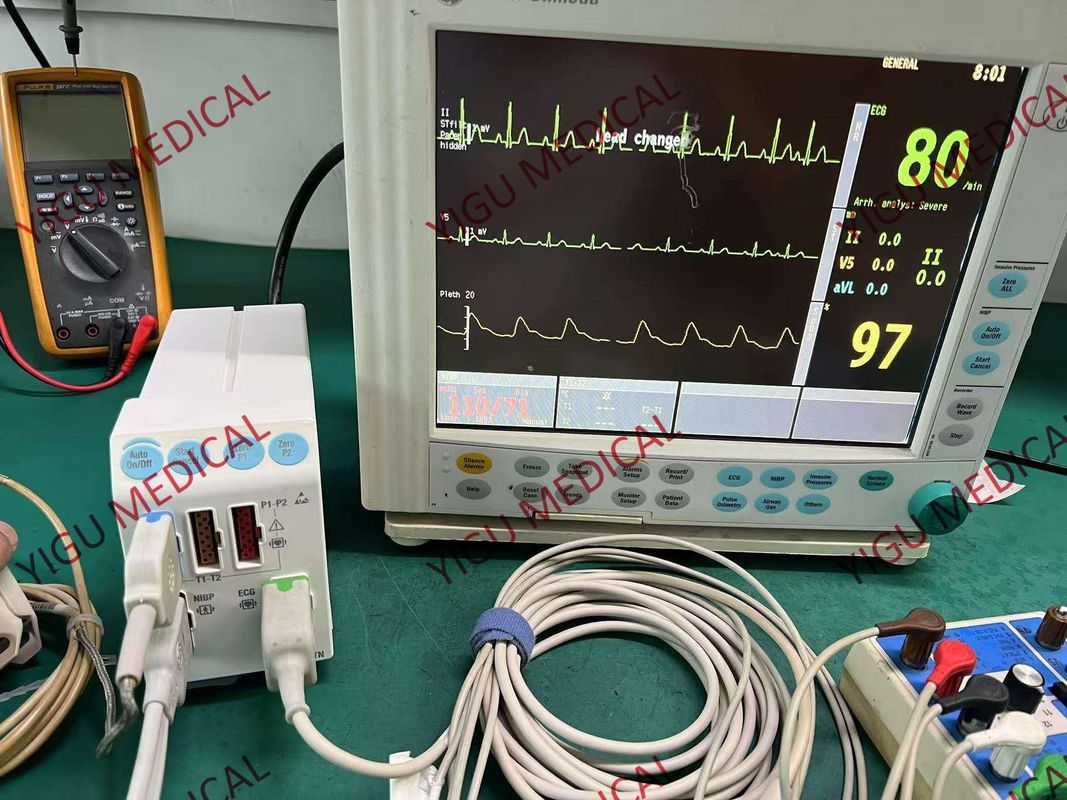 - می تواند طیف گسترده ای از پارامترهای فیزیولوژیکی را اندازه گیری کند.که فعالیت الکتریکی قلب را منعکس می کند و به تشخیص مشکلات مربوط به قلب مانند آریتمی کمک می کند.اندازه گیری فشار خون غیر تهاجمی (NIBP) در دسترس است که اطلاعات مربوط به فشار خون سیستولیک و دیاستولیک را برای ارزیابی وضعیت گردش خون بیمار فراهم می کند.همچنین می تواند تا شش کانال فشار خون را برای نظارت عمیق تر در برخی موارد اندازه گیری کند.درجه حرارت، اشباع اکسیژن (SpO2) و سرعت تنفس دیگر پارامترهای کلیدی هستند که می تواند آن را ردیابی کند. علاوه بر این، توانایی نظارت و ثبت عامل 5 را دارد.که در سناریوهای بیهوشی و مراقبت از تنفسی برای نظارت بر سطح گاز ها یا عوامل مربوطه مفید است..